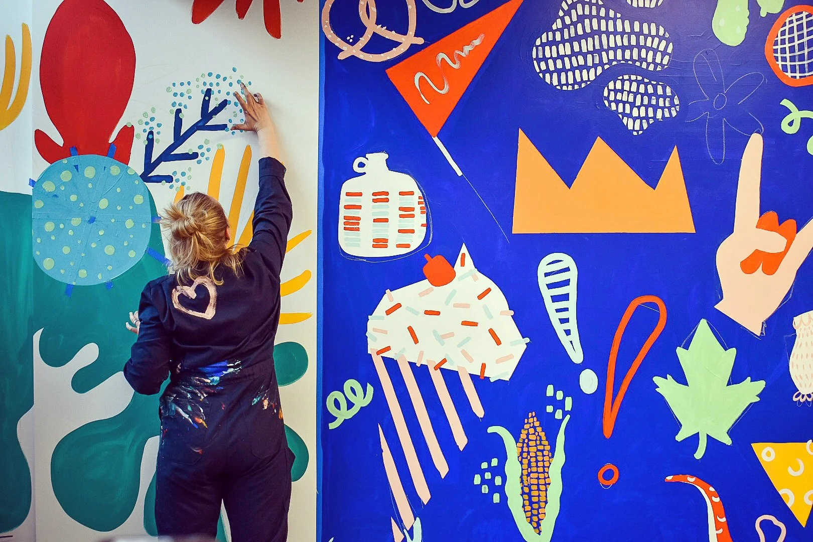 My work blends abstract expressionism with storytelling- inviting people of all ages to connect through color, collaboration, and creativity.